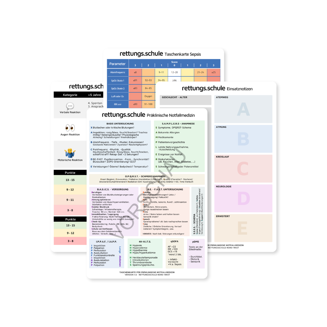 Wir bieten dir zwei hochwertig gestaltete Notfall-Taschenkarten für deinen Rettungsdienst-Alltag.
